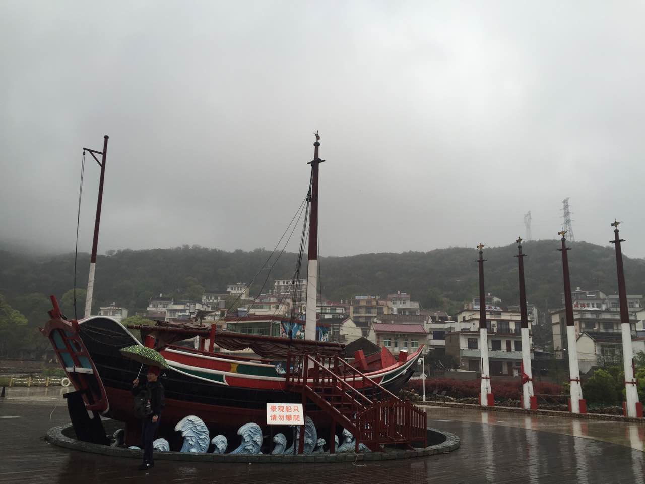 第一站旅途是嵊泗海洋文化陳列館和大悲山。在文化館里,展示了嵊泗列島特有的一些生活和捕魚文化,還有當(dāng)?shù)刂臐O民畫,色彩鮮艷十分漂亮,讓我們?cè)鰪?qiáng)了不少閱歷。再往上走,便是大悲山觀景臺(tái)。受天氣的影響,雖然霧氣騰騰,但一路過(guò)去,在那空中俯瞰山景,一條石徑坎于莽莽綠色之中,宛如綿延的飄帶。越往上就越精彩,山間云霧撩繞俯看人間煙火,好一幅大自然的絕妙圖景,讓人贊嘆,并以其獨(dú)特的風(fēng)光給我們留下了深刻的印象。